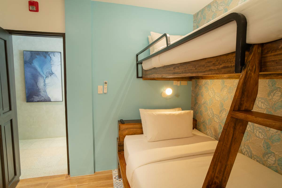 Enjoy the cozy and fun atmosphere of your own private bunk bed room at J Boutique Hotel. This compact and charming room features a bunk bed with two comfortable first class mattresses. Step inside and be greeted by a colorful and lively room space equipped with everything you need for a convenient and enjoyable stay, including a private bathroom, hot showers, smart TV, fast WiFi, air conditioning, and access to complimentary amenities and toiletries. Whether you’re looking to join the island tours, visit the nearby beaches, or simply have fun with a friend, the Private Bunk Bed Room is the perfect place to experience the urban vibes of El Nido. Book your dream holiday now!