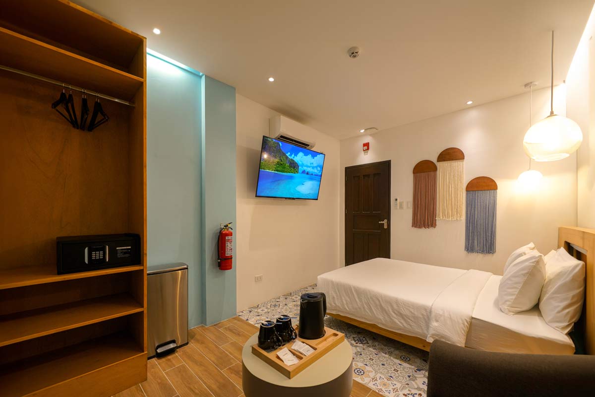 Experience the chic and modern design of your own double room at J Boutique Hotel. This stylish and spacious room features a double bed with a cozy queen-size mattress. This sleek and elegant room space is equipped with everything you need for a comfortable and memorable stay, including an ensuite bathroom with a hot shower, a smart TV, fast WiFi, air conditioning, a minibar, along with access to complimentary amenities and toiletries. Whether you’re looking to taste the flavors of the island, explore the culture and history of El Nido, or simply relax in your room, the Double Room is the perfect place to enjoy the urban island lifestyle of El Nido. Book your island getaway now with ease!